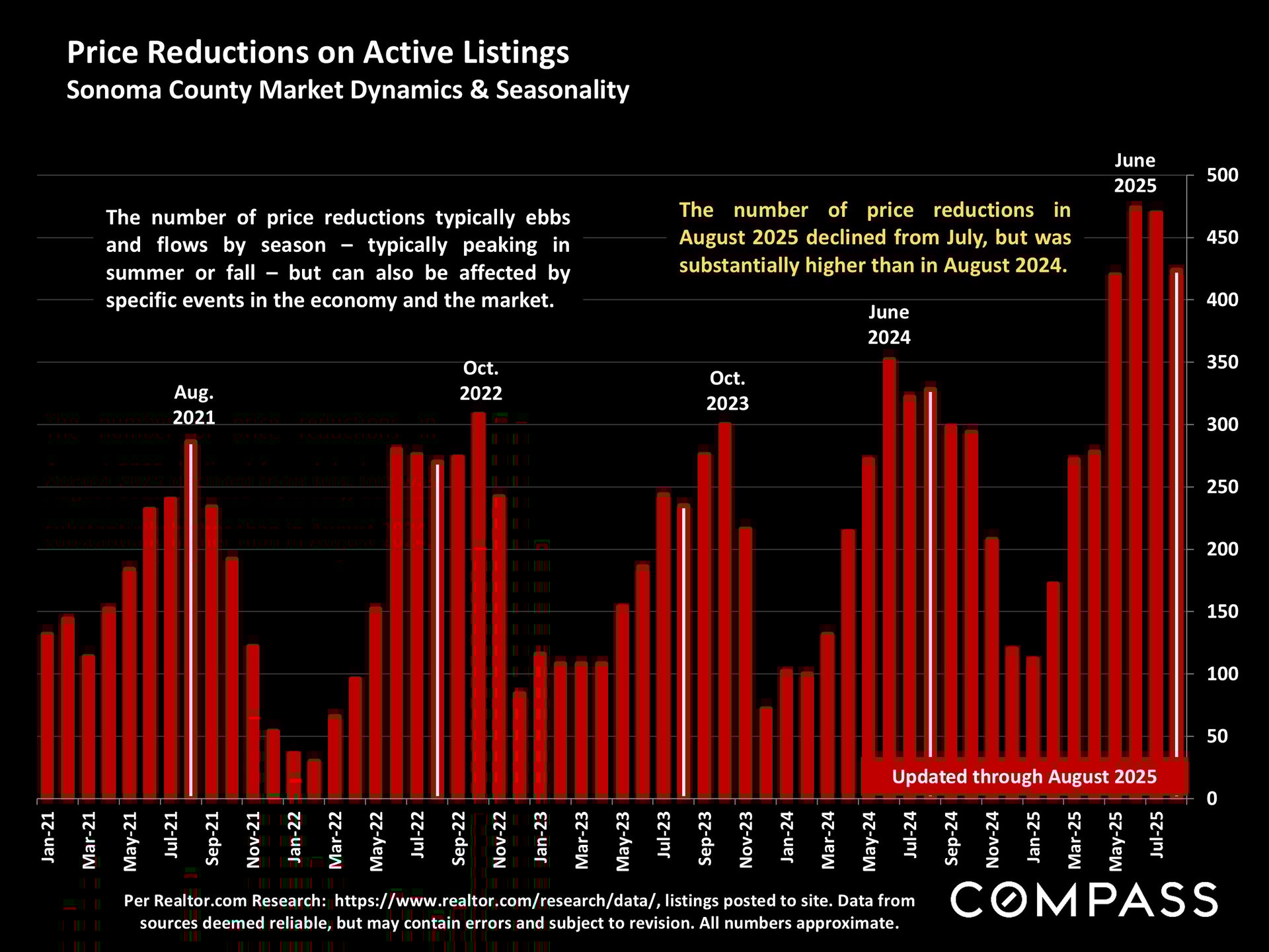 The number of price reductions came down slightly in August, but it is still high - reflecting the competition that sellers have with other opportunities for buyers.