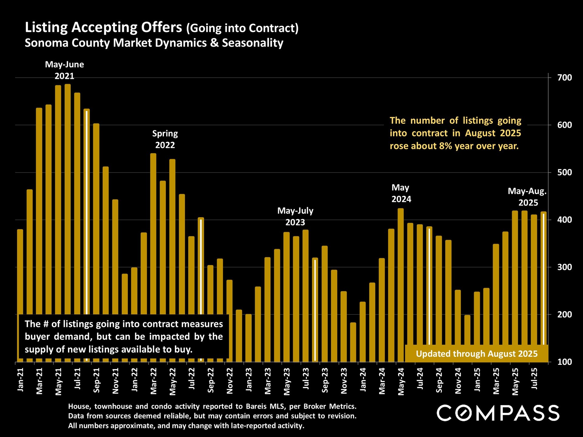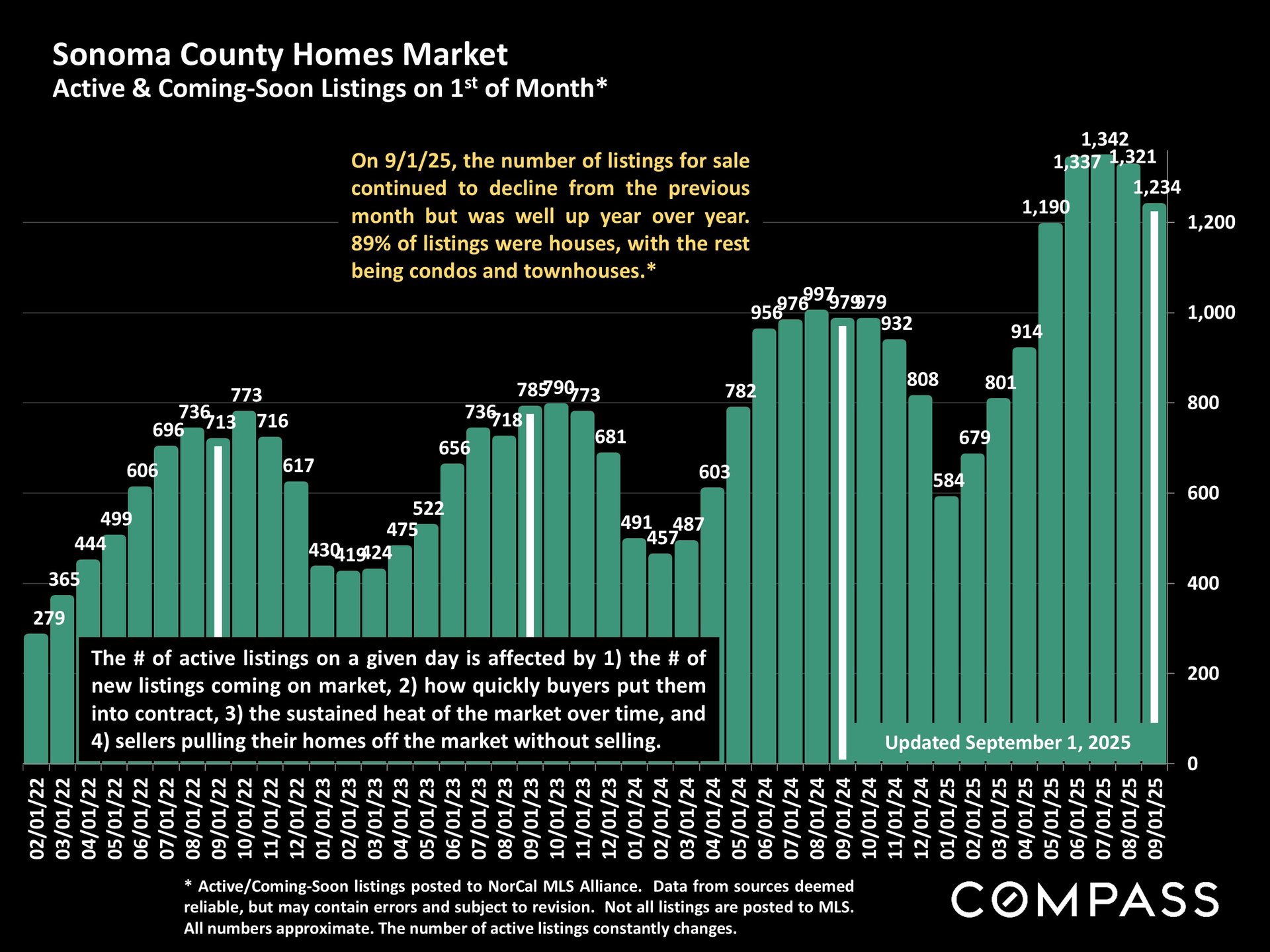 In August, we continued to see a lot of inventory available for buyers and longer days on market for sellers. September until mid-November is often a strong market in Sonoma County. With possible rate cuts soon and busy open houses, we look forward to seeing how it unfolds.