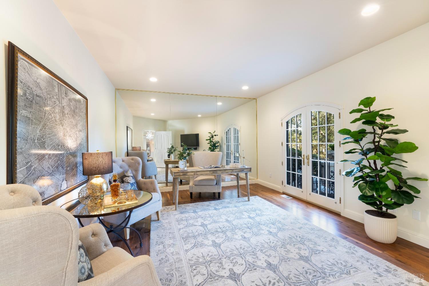 Beyond the impressive gated entrance, discover a stately luxury estate on 2.57 private and serene park-like acres. This elegant property is in Woodside Hills, an exclusive enclave of custom homes nestled in a spectacular natural setting with room for a pool. The European-inspired residence offers four en-suite bedrooms and an office/optional bedroom with over 5300 square feet and exquisite craftsmanship that is rare to find extensive millwork, custom mouldings, and arched windows. The grand gathering spaces are simply breathtaking - with soaring ceilings, classic finishes, and views overlooking the grounds. Outdoors, mature trees flourish providing a natural setting complemented by an expansive grass area, garden planters, fruit trees, and a paved pathway. The residence is immaculate and has been extensively upgraded since 2019 in keeping with clean and eco-friendly principles; the investments include owned solar & battery storage, electric HVAC systems, water and air filtration, and more. Additional updates, too numerous to list all, include a kitchen renovation, roof replacement, driveway expansion, plus sauna. This regal estate is a rare find and offers a touch of Europe, just minutes to Sonoma County's world-class wineries, restaurants & top-rated schools.